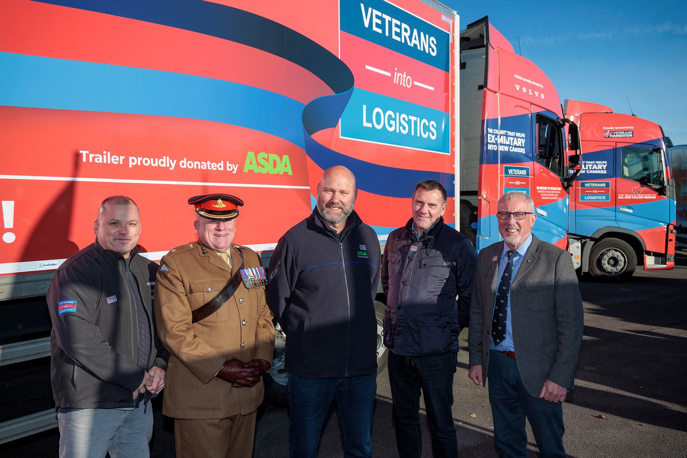 Greater Manchester veterans’ charity, Veterans into Logistics has proudly launched a fleet of three striking red, modern Volvo trucks with dynamic and eye-catching livery, thanks to Volvo Trucks UK & Ireland and Asda donating vehicles, and a generous £30k grant from the Veterans’ Foundation.